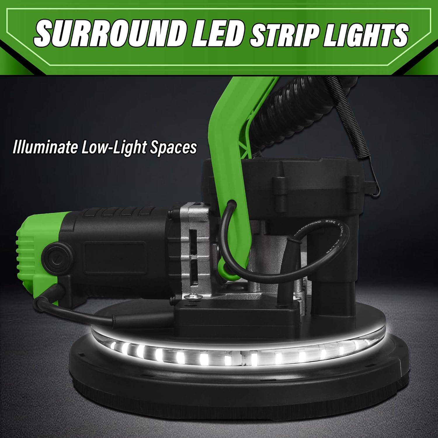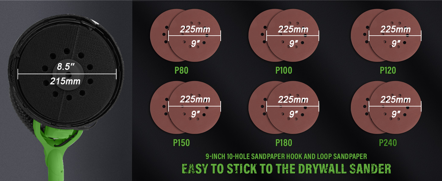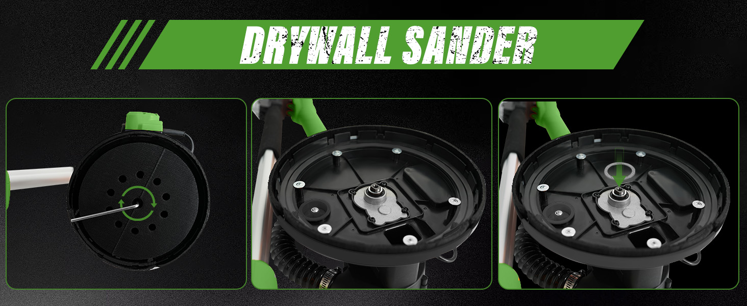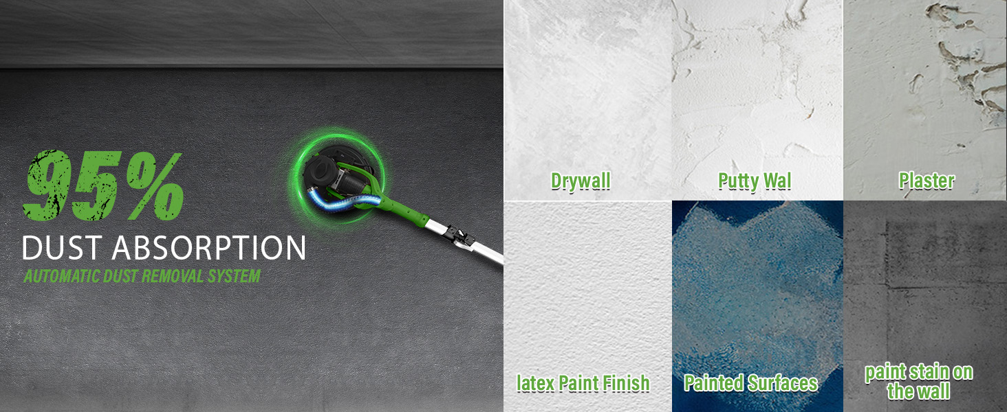 1050W Electric Drywall Sander with Vacuum, LCD Display, 7 Speeds (800–2100RPM), Foldable & Extendable Handle, 12 Sanding Discs, for Walls, Ceilings, Floors (Green)