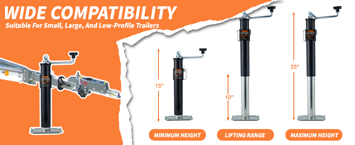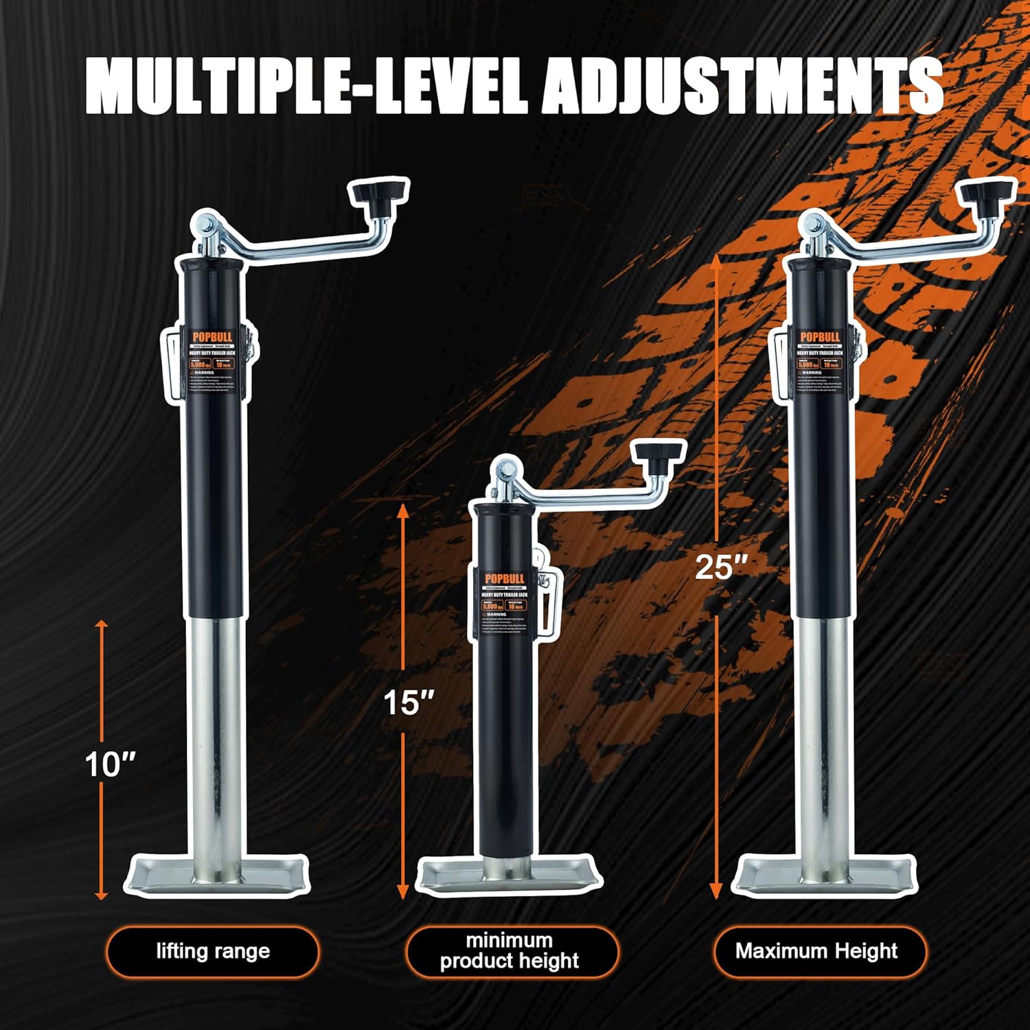 5000 lb Weld-on Pipe Swivel Trailer Jack, 10" Lift Trailer Jack with Footplate, Suitable for RVs, Boats, Multi-Purpose Trailers, and Camping Trailers