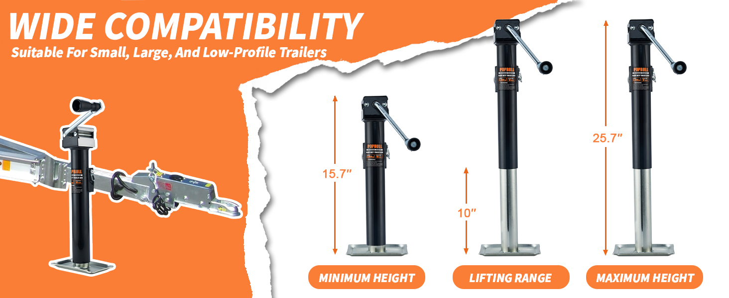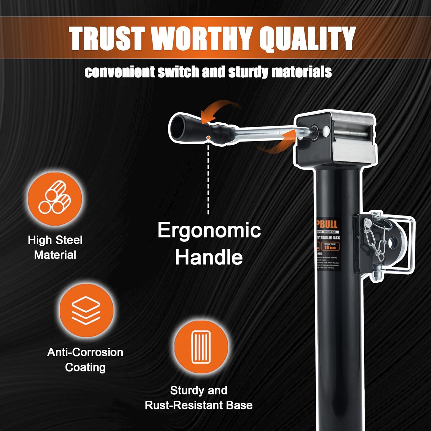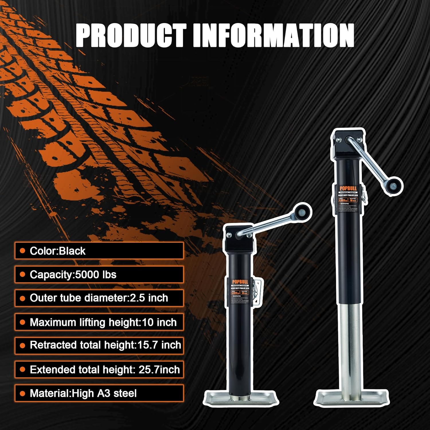 5000lb Weld-on Pipe Swivel Trailer Jack, 10" Vertical Travel Trailer Tongue Jack, Suitable for RVs, Boats, Horse Trailers and Multi-Purpose Trailers