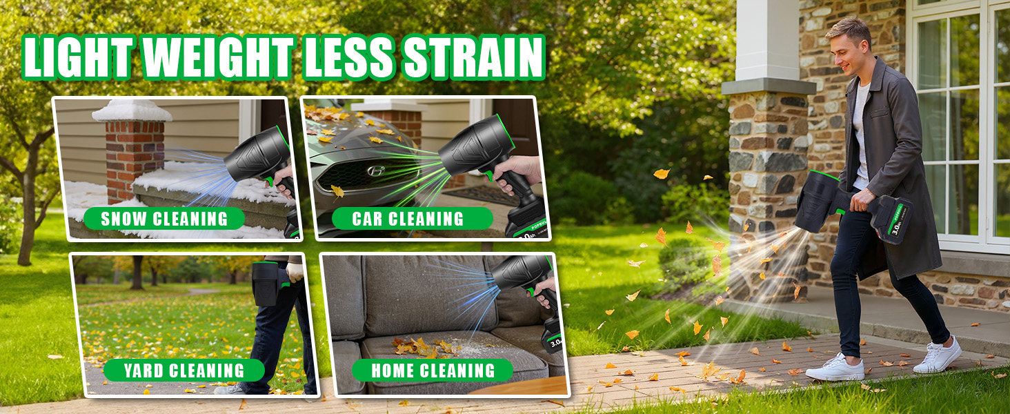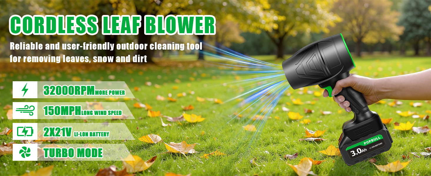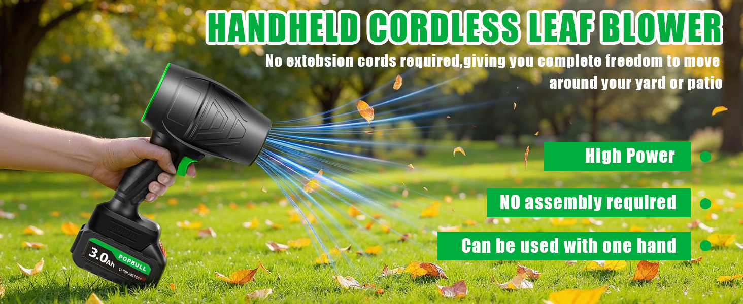 Leaf Blower, 21V Cordless Electric Blower with 2 3.0Ah Batteries and 1 Hour Fast Charger, Lightweight Leaf Blower for Patio Cleaning, Lawn Care, Blowing Fallen Leaves and Dust, etc.