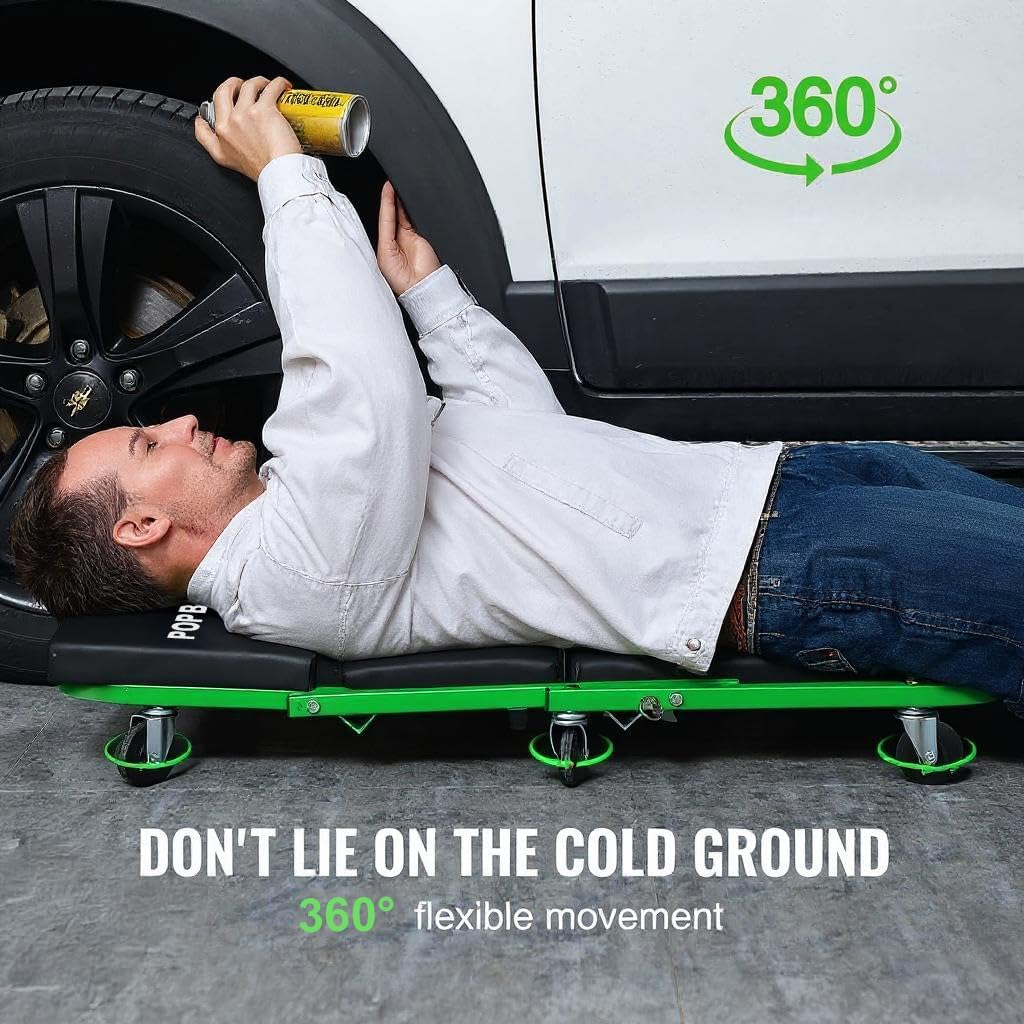 POPULL Foldable Z Garage Creeper, 36 inch, 300 lbs Load Capacity Rolling Folding Mechanic Creeper Stool, with 6 Universal Wheels Padded Seat Steel Frame, Lay Down or Sit Chair for Garage Shop or Home