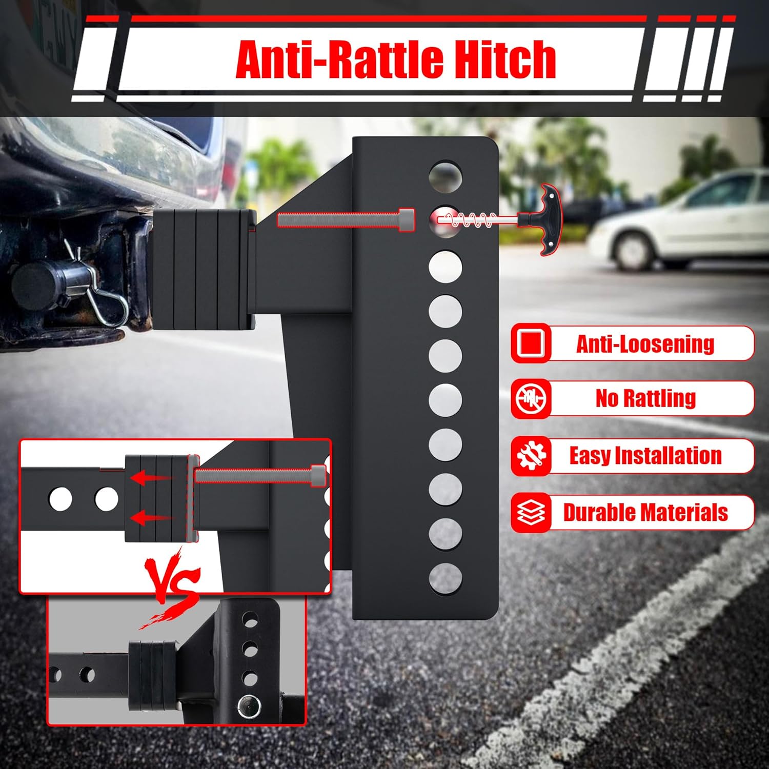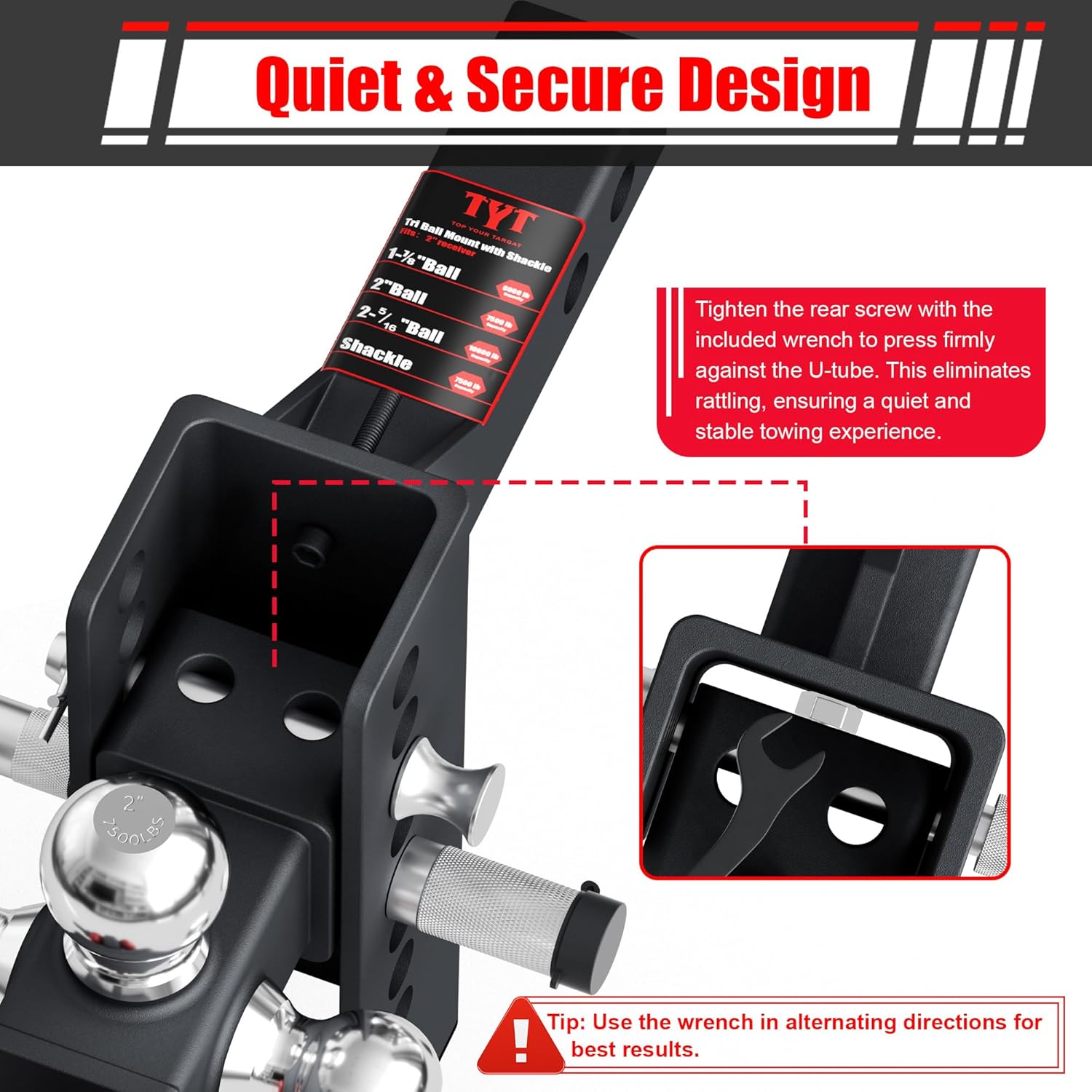 TYT Adjustable Heavy-Duty Trailer Hitch Tri-Ball Mount with Locks&Pin&Rotatable Tow Shackle, Fits 2-in Receiver, 4-1/2" Rise/Drop, 1-7/8" & 2" &2-5/16" Ball, 10000LBS GTW