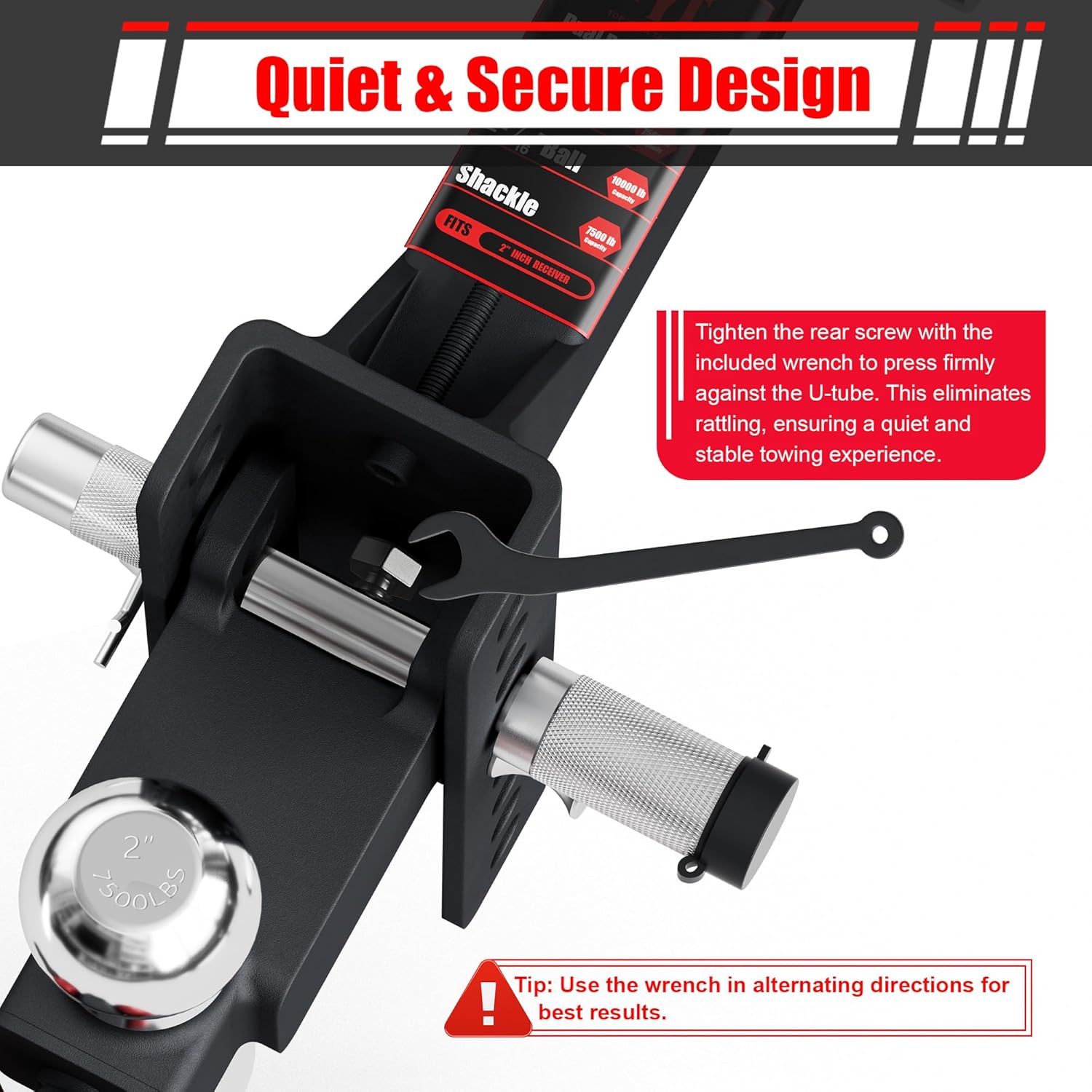 TYT Adjustable Trailer Hitch Ball Mount with Lock&Pin&Rotatable Tow Shackle, Fits 2-in Receiver, 2-in, 2-5/16-in Hitch Ball